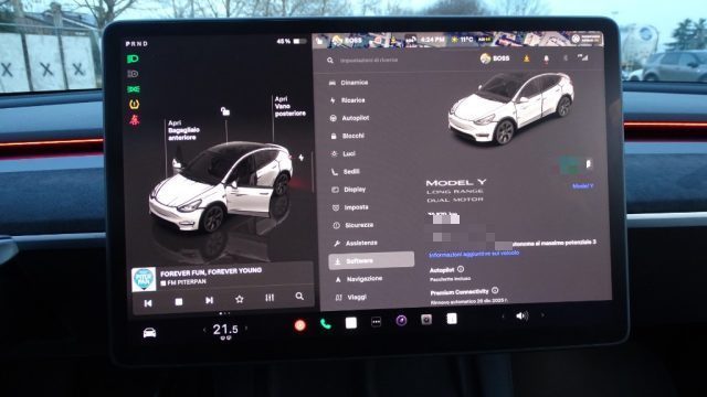 La Tesla Model Y Long Range Dual Motor è la berlina "Premium" completamente elettrica, vanta più di 500 chilometri di autonomia, arriva a 100 km/h in 4"3 e raggiunge i 250 km/h. Molto sicura e con un notevole concentrato di tecnologia. Il fascino non gli manca, la linea e pulita e sinuosa, mantenendo la sua sportività da supercar. Nella console centrale c'è l'ormai famoso dispaly da 17 pollici, che sostituisce quasi tutti i tasti fisici con il touchscreen dell'interfaccia grafica, comprendendo media, navigatore, comunicazione, controllo dell'abitacolo e dati del veicolo, e molte sono ad attivazione vocale, inoltre ce il gancio traino.